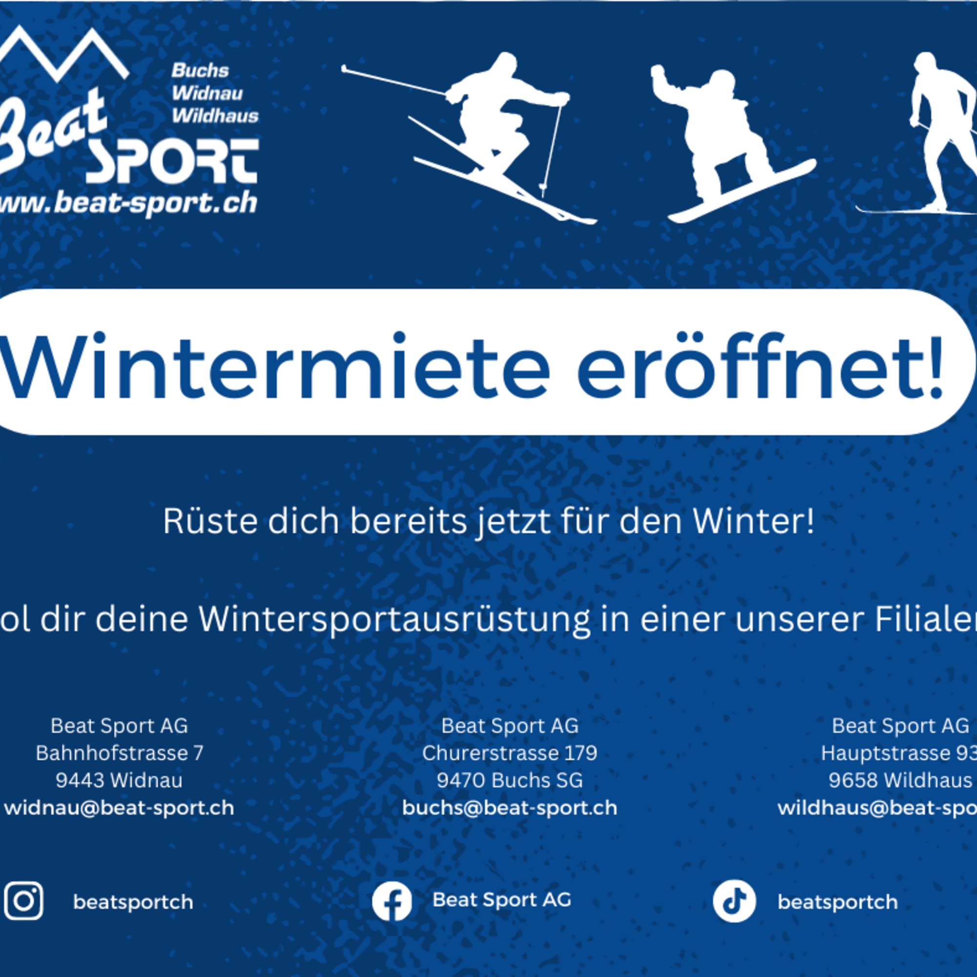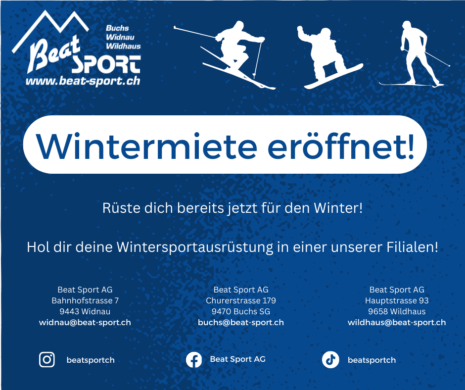 In unsere Wintersportvermietung findest du eine grosse Auswahl an Mietgeräten. Egal ob Alpinski oder Nordic, egal ob Snowboard oder Schneeschuhe. Bei uns werden sie fündig. Kommen sie vorbei und rüsten sie sich für die Wintersaison! Weitere Infos und Preise finden Sie im Menü unter dem Reiter Wintermiete